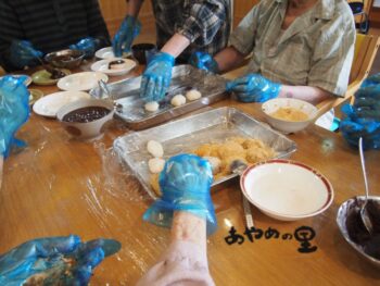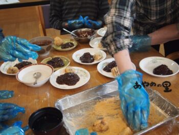 2025.10.01 あやめの里 おはぎ作り あやめの里です。 9/24 お彼岸の中日・・・から一日遅れではありましたが、 ショートステイでおはぎ作りをしました♪ 7合分のお米を用意していましたが、みなさん慣れた手つきで作業されるので、 あっという間に出来上がってしまいました(^^) もち米の軟らかさもちょうど良く、「美味しいわ」「こんなに美味しくできるなんて思ってへんかったわ」と、大好評でした!