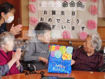 2025.11.06 あやめの里 お誕生日会 あやめの里です。 本日のお誕生日会では、 ご希望の紅白まんじゅうを5個入りでご用意しました。 皆さんで分け合いながら、笑顔でお祝い🎉 ご家族からのプリンの差し入れもあり、 心温まる時間となりました🍮✨ 「昔は紅白まんじゅうをお祝いの時に配ったね」と、 懐かしい思い出話にも花が咲きました🌸
