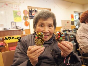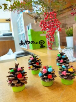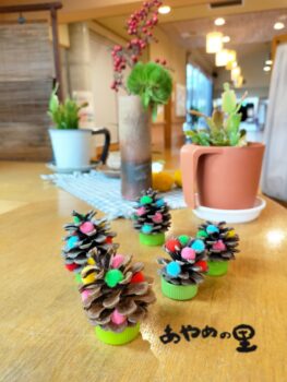 2025.12.23 あやめの里 クリスマスツリー🎄 あやめの里です。 松ぼっくりがかわいいクリスマスツリーに変身🎄 手作りの温もりいっぱい✨ デイサービスのご利用者さんの笑顔と一緒に、かわいさ倍増です✨