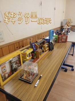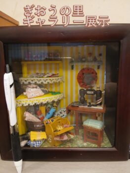 2026.01.09 ぎおうの里 ぎおうの里 ギャラリー展示 ぎおうの里では、 玄関を入ってすぐのところにギャラリースペースを設けています。 今回の展示は「ミニチュアの世界」です。 職員のお義母さまの渾身の作品です。 ひとつひとつ、とても小さいのに精巧で、天井の照明からお茶椀まで、作りこまれています。 大きさが分かるように、ボールペンを並べています。 お近くにお越しの際は、ぜひお立ち寄りください。 令和8年1月25日までの展示です。