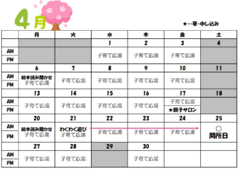 さて、4月のきたの子育て支援センターの予定をお知らせします。