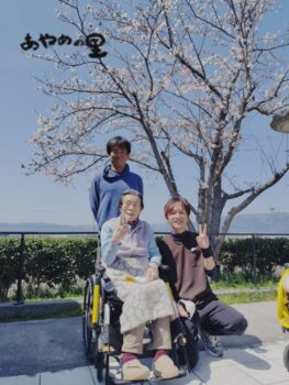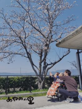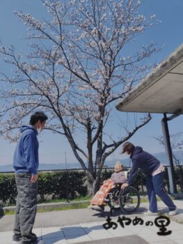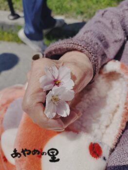 2026.04.09 あやめの里 中庭の桜 あやめの里です。 中庭の桜が、今年もきれいに咲きました🌸 少し肌寒い風が吹いていましたが、 皆さまと一緒に中庭へ出て、ささやかなお花見を楽しみました。 「きれいだね」「風が吹いても散らずに咲いているね」と、自然と笑顔に😊 空を見上げると、わしやとんびも気持ちよさそうに飛んでいて、穏やかな良いお天気でした。 足元に目を向けると、落ちた花びらの中心の色が少し違っていて、不思議な発見もありました。 春のひととき、ゆったりとした時間を過ごすことができました🌷