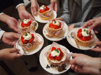 ささやかながらケーキで歓迎会😊